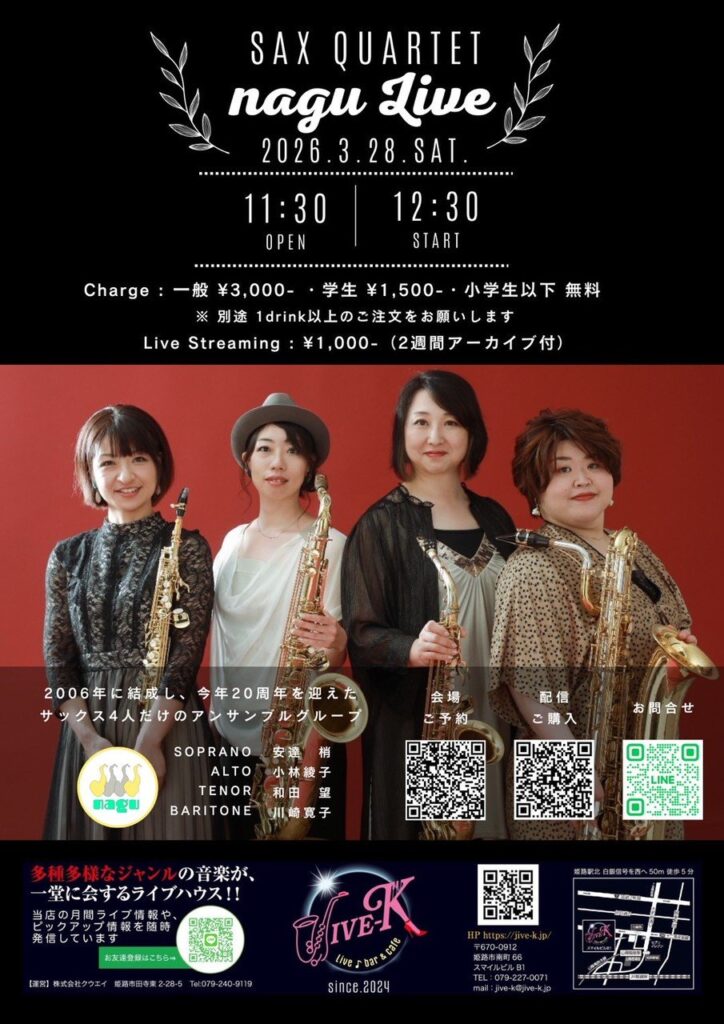3/28㈯に姫路JIVE-Kでライブをします!